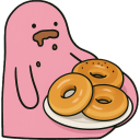pink blob eating donuts